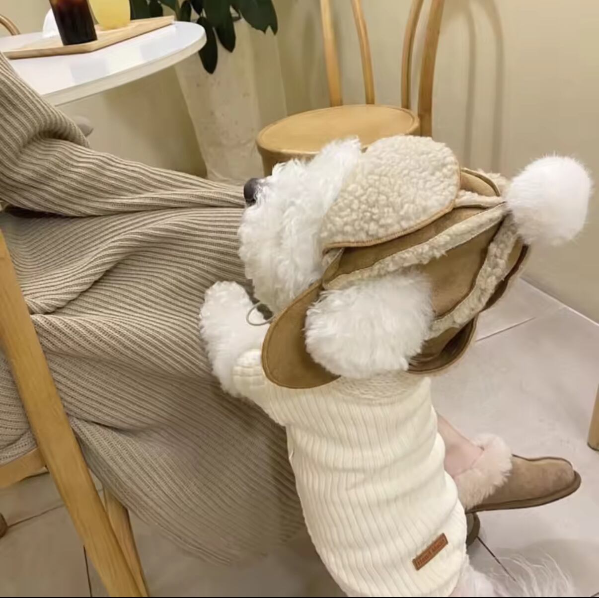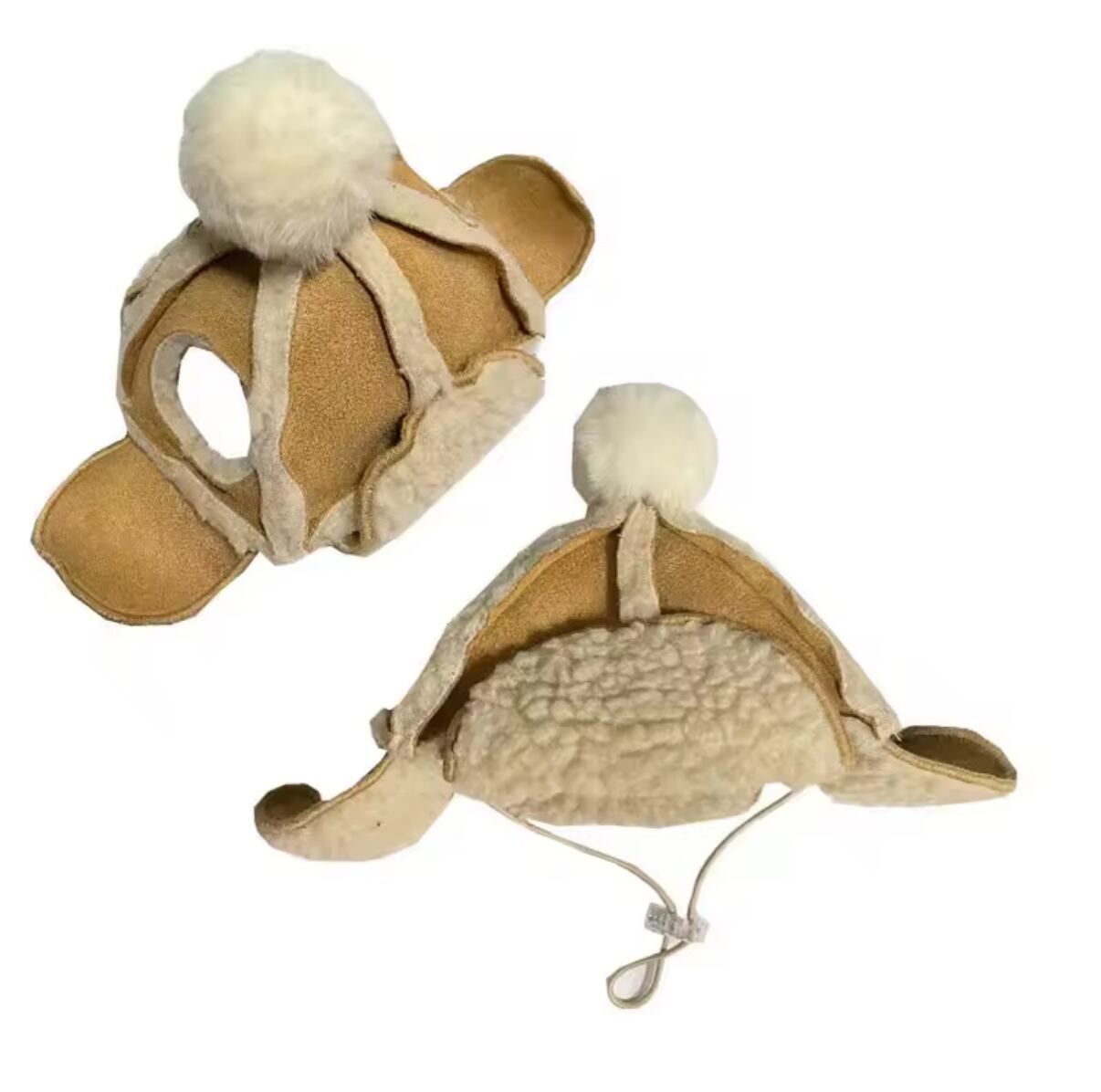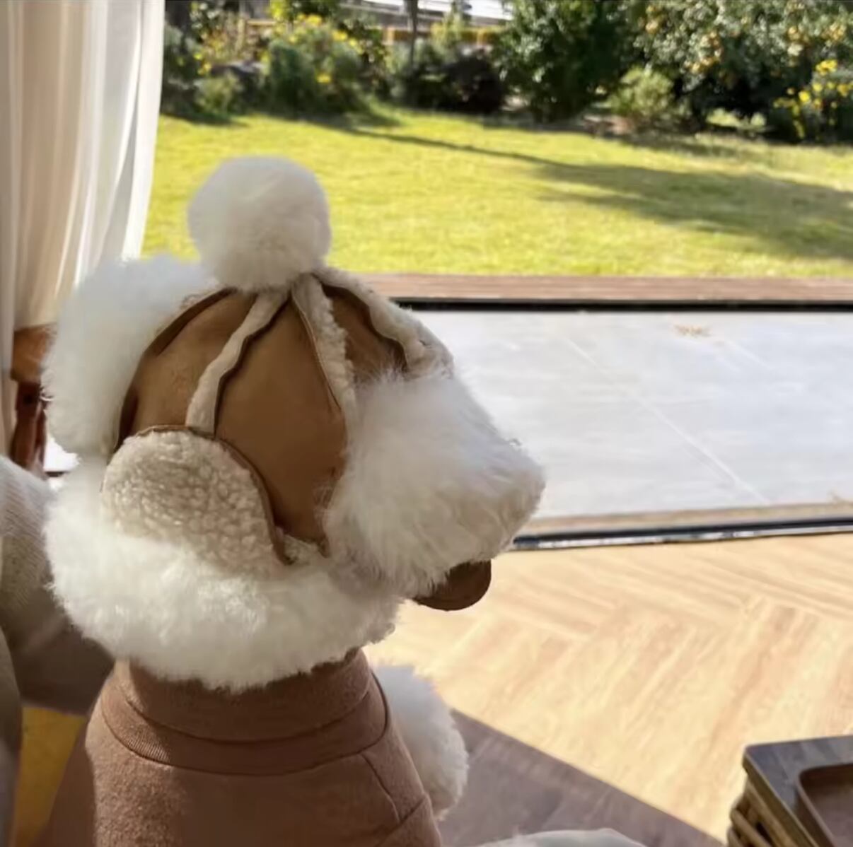 全2色 ボアハット 防寒 帽子 ムートン 犬服 ドッグウェア ペット服 わんこ