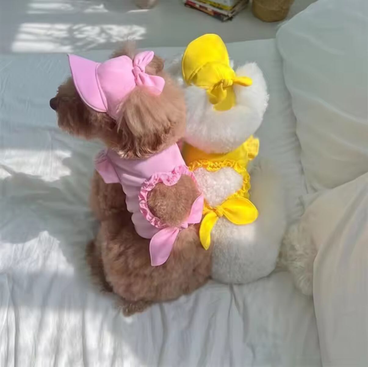 全5色 帽子付き ハート型トップス 春夏 犬服 ドッグウェア ペット服 わんこ