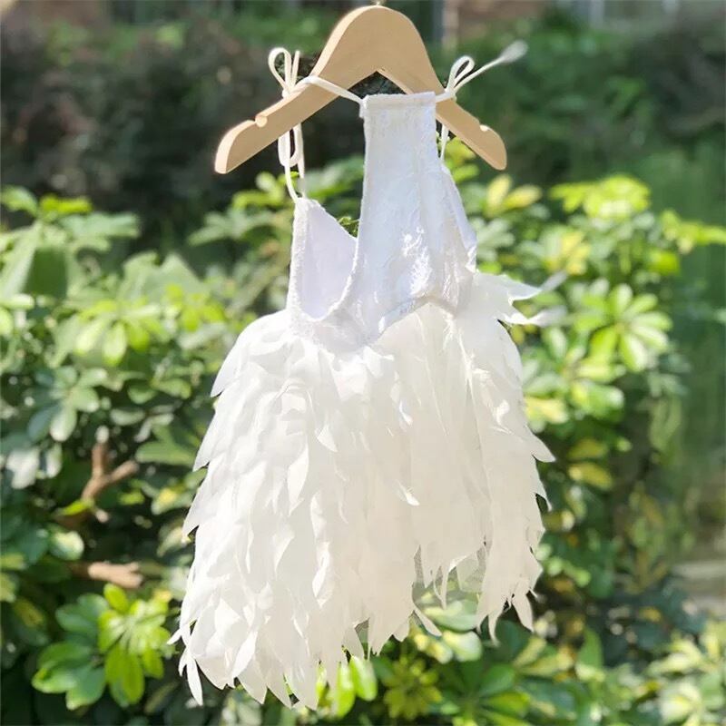 ホワイトワンピース 羽 キャミワンピ 犬服 ドッグウェア ペット服 わんこ