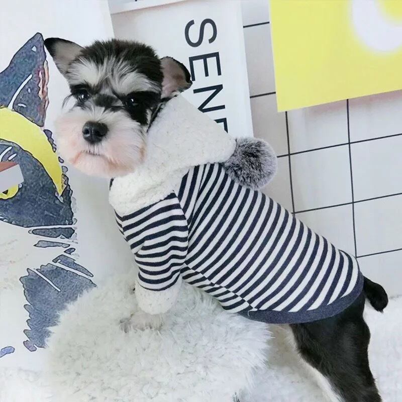 ボーダーパーカー ボンボン ボア 犬服 秋冬 ドッグウェア ペット服 わんこ