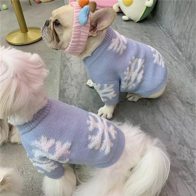 ニットセーター 雪の結晶 秋冬 ブルー 犬服 ドッグウェア ペット服 わんこ